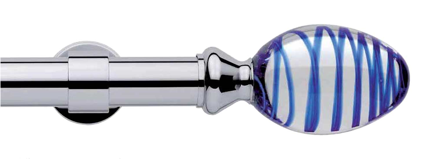 Błyszczące lub satynowe wykończenie karnisza w połączeniu z ekskluzywnym szkłem ze słynnego Murano kreują jego luksusowy design. Karnisz pięknie się zaprezentuje w eleganckim nowoczesnym wnętrzu lub w aranżacji w stylu glamour.