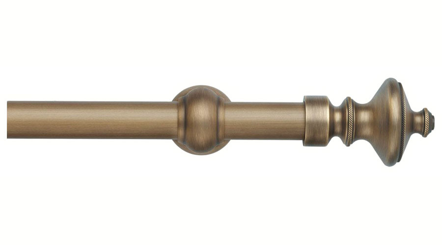 Elegancki karnisz o ponadczasowym designie, z zakończeniami w kształcie berła. Idealnie wpasuje się w klasyczną lub tradycyjną aranżację wnętrza.