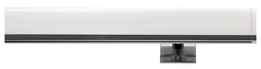 tworzy elegancki profil szynowy o prostej formie. Szynowy charakter karnisza umożliwia przesuwanie tkaniny wzdłuż całej jego długości, wsporniki nie stanowią ograniczenia. Atrakcyjny wygląd nadają karniszowi wsporniki oraz bogata paleta kolorów wykończenia. Wysokość profilu wynosi 50 mm.