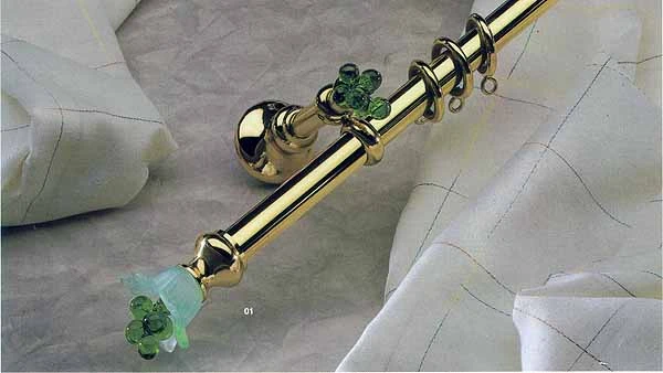 Karnisz dostępny jest w wykończeniu mosiądz lakierowany polerowany, końcówka ze szkła Murano w kolorach: