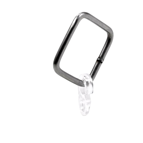 Karnisz może być wyposażony w kółka-klamry kwadratowe lub w klamry żabki z kryształem Swarovski'ego.